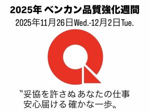 ベンカンでは品質月間内にベンカン品質強化週間を設け、下記の2項目を重点実施項目とした集中実施により、更なる品質意識の向上を図って参ります。